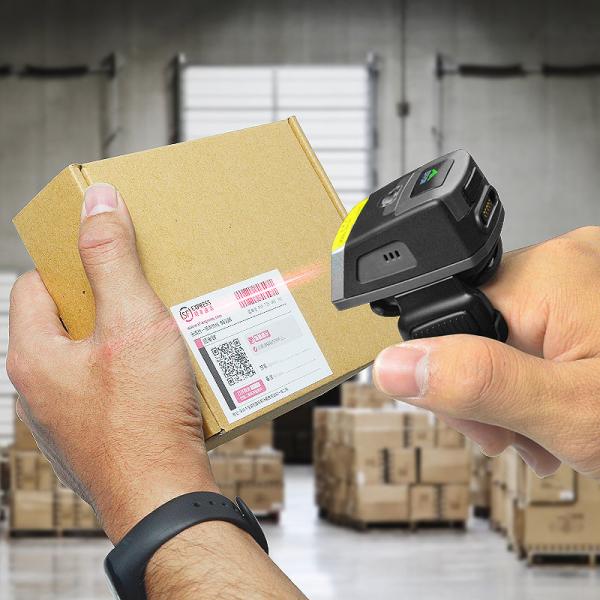 EF02 wearable ring scanner enable operator to move package , products and materials, helping to increase more efficiency, It is very comfortable to wear it in whole working day, with high performance laser scan engine.